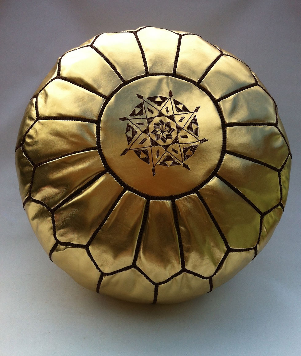 Faux Leather Pouffe Gold w.Brown embroidery (P305)